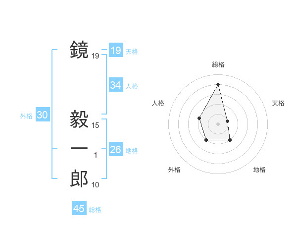 鏡 毅一郎さんを姓名の画数から五運を鑑定