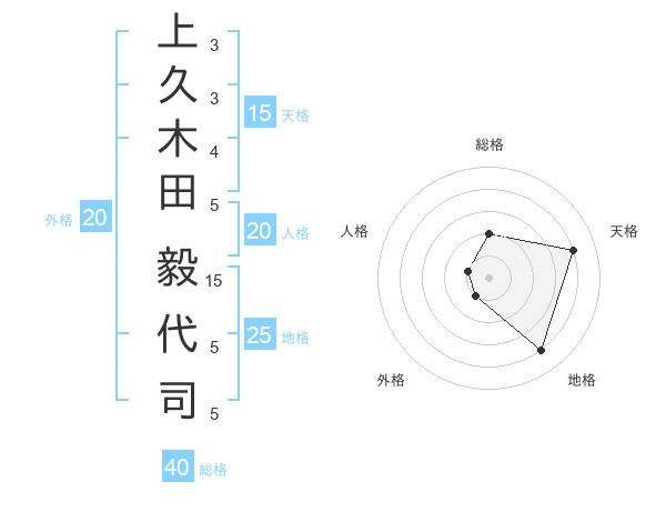 上久木田 毅代司さんの外格は20画の1点!