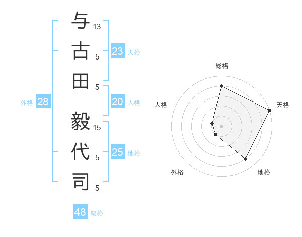 与古田 毅代司さんを姓名の画数から五運を鑑定