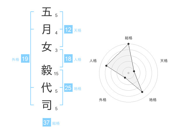 五月女 毅代司さんを姓名の画数から五運を鑑定
