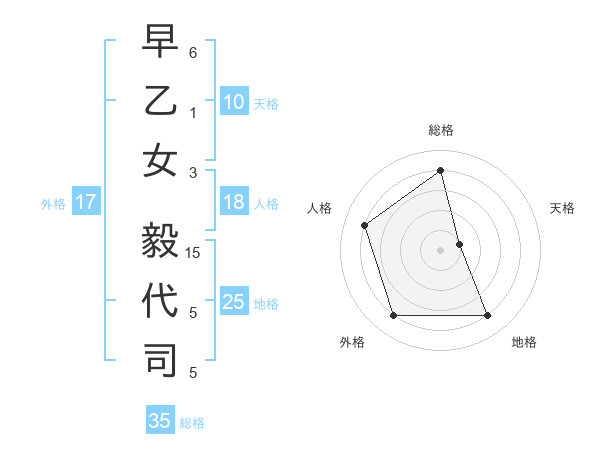 早乙女 毅代司さんを姓名の画数から五運を鑑定