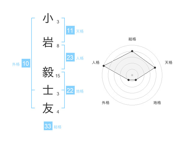 小岩 毅士友さんの総格は33画の4点!
