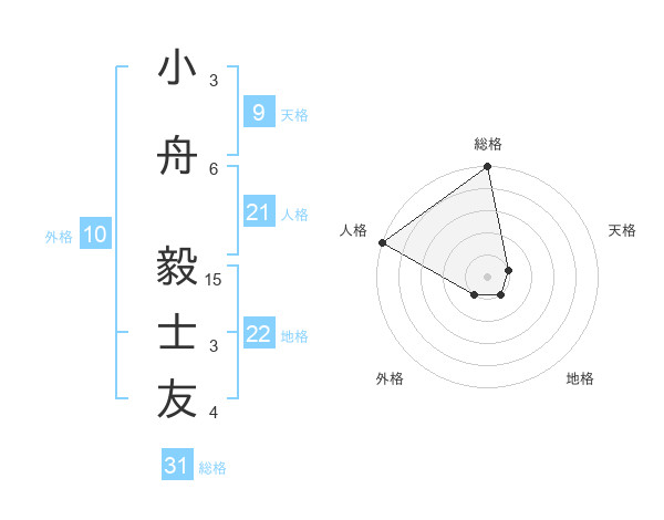 小舟 毅士友さんの総格は31画の5点!