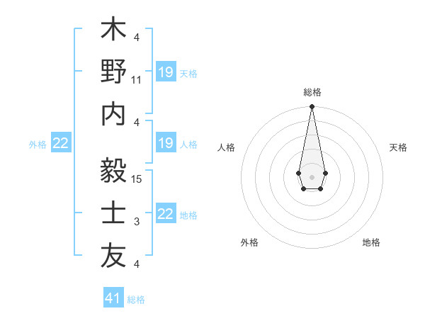 木野内 毅士友さんを姓名の画数から五運を鑑定