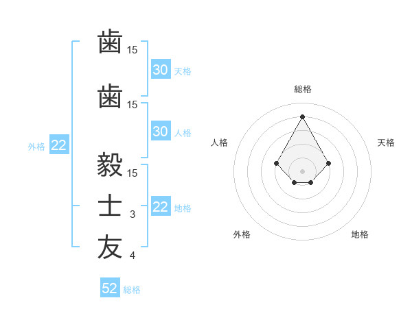 歯歯 毅士友さんの外格は22画の1点!