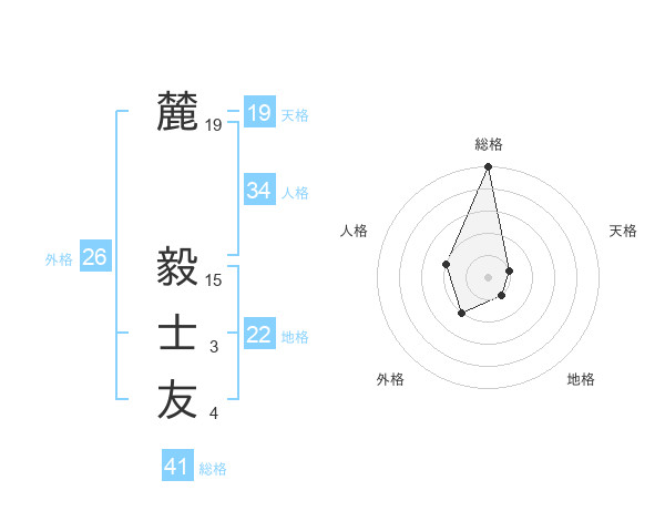 麓 毅士友さんの総格は41画の5点