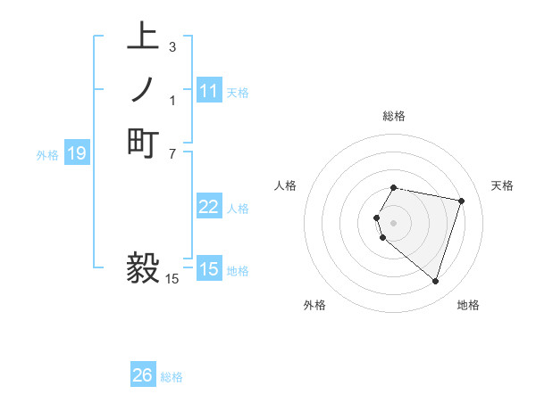 上ノ町 毅さんの総格は26画の2点!
