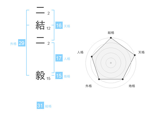二結二 毅さんの外格は29画の4点!