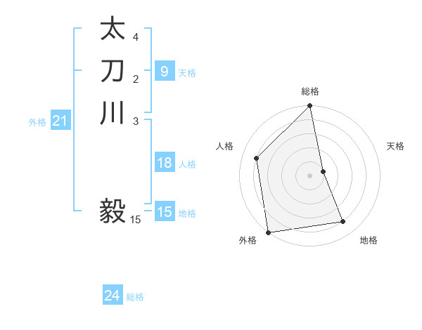 太刀川 毅さんの総格は24画の5点!
