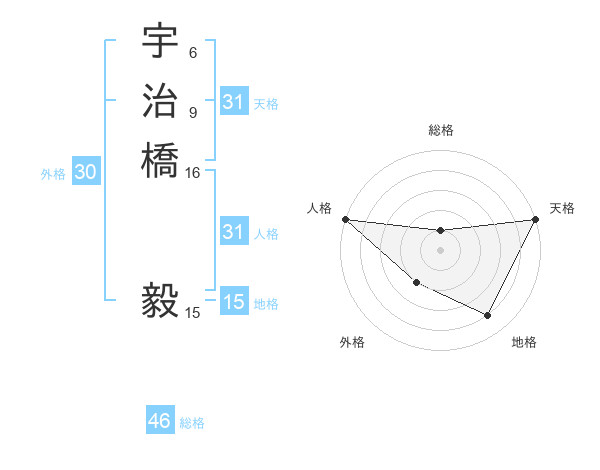 宇治橋 毅さんの総格は46画の1点!