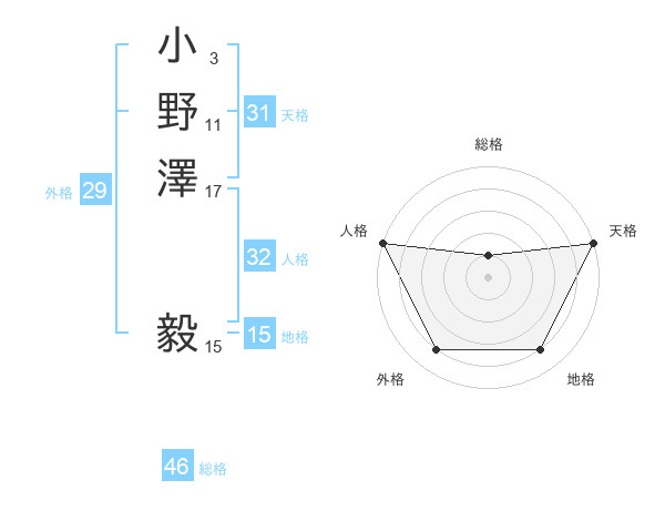 小野澤 毅さんを姓名の画数から五運を鑑定
