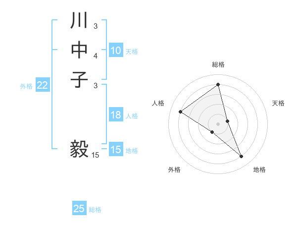 川中子 毅さんの総格は25画の4点!