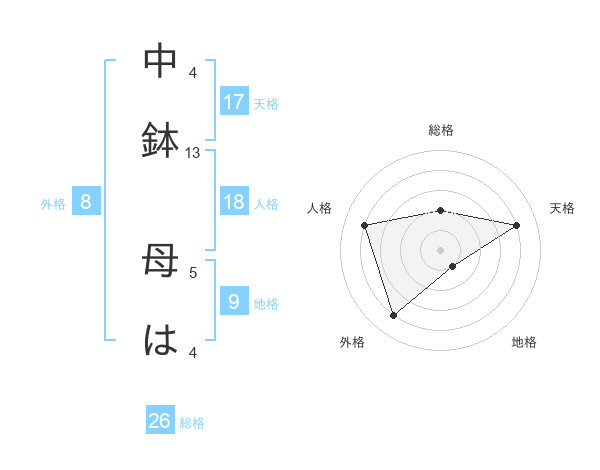 中鉢 母はさんを姓名の画数から五運を鑑定