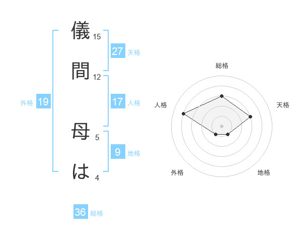 儀間 母はさんの天格は27画の3点!