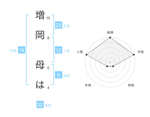 増岡 母はさんの総格は32画の5点!