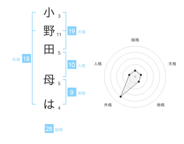 小野田 母はさんの総格は28画の1点!