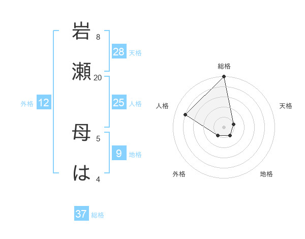 岩瀬 母はさんを姓名の画数から五運を鑑定