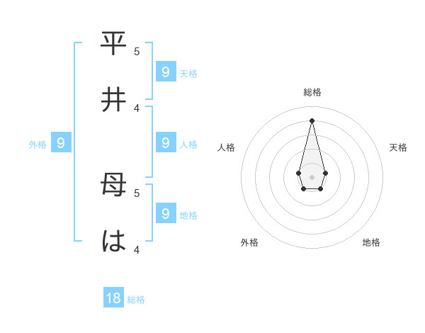 平井 母はさんの地格は9画の1点!