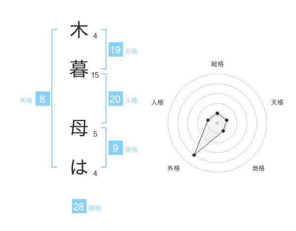 木暮 母はさんの外格は8画の4点!