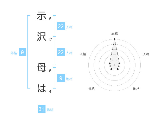 示沢 母はさんの総格は31画の5点!