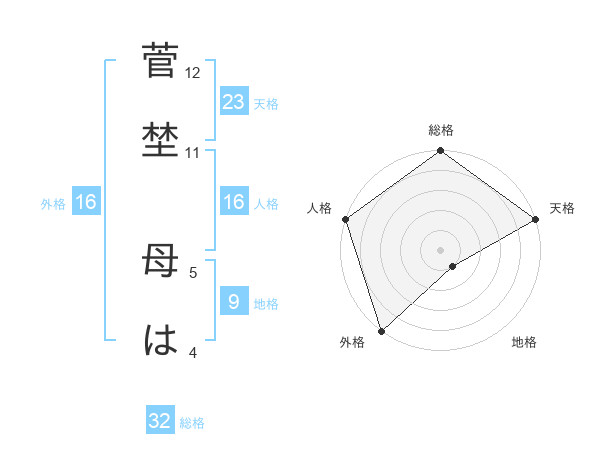 菅埜 母はさんの総格は32画の5点!