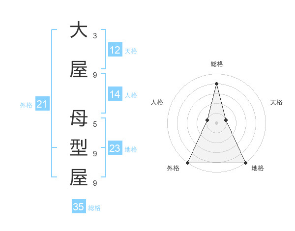 大屋 母型屋さんを姓名の画数から五運を鑑定