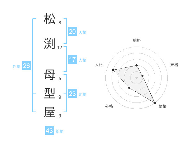 松渕 母型屋さんを姓名の画数から五運を鑑定