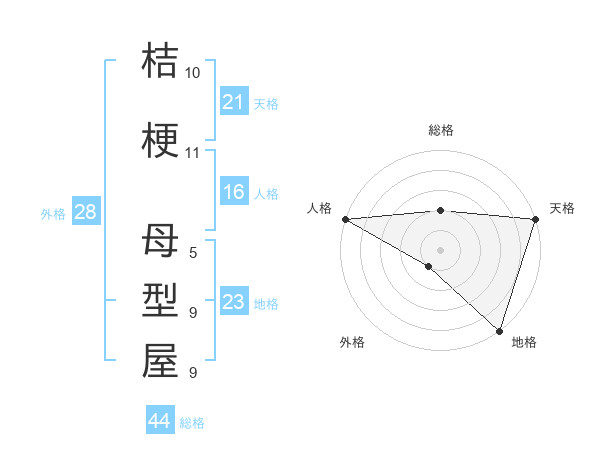 桔梗 母型屋さんの天格は21画の5点!