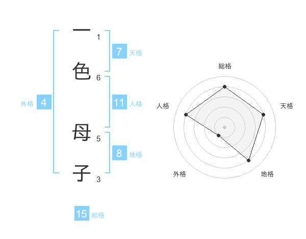 一色 母子さんの総格は15画の4点!