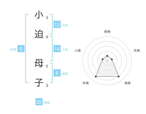 小迫 母子さんの地格は8画の4点!