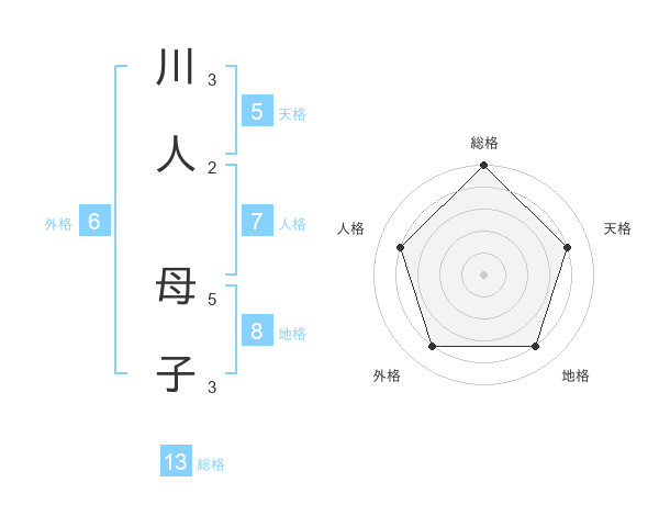 川人 母子さんの総格は13画の5点!