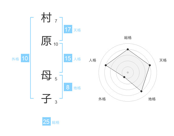 村原 母子さんの天格は17画の4点!