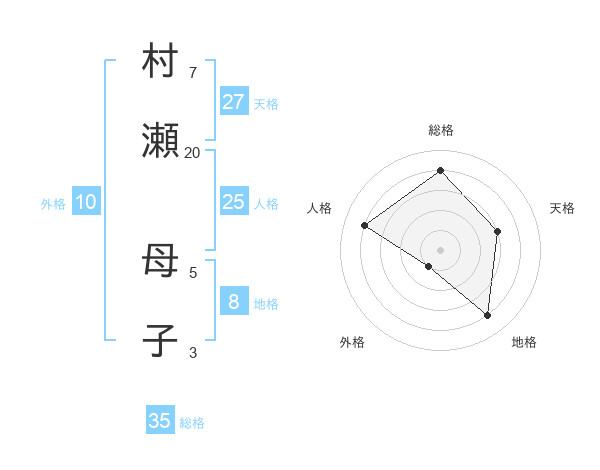 村瀬 母子さんを姓名の画数から五運を鑑定