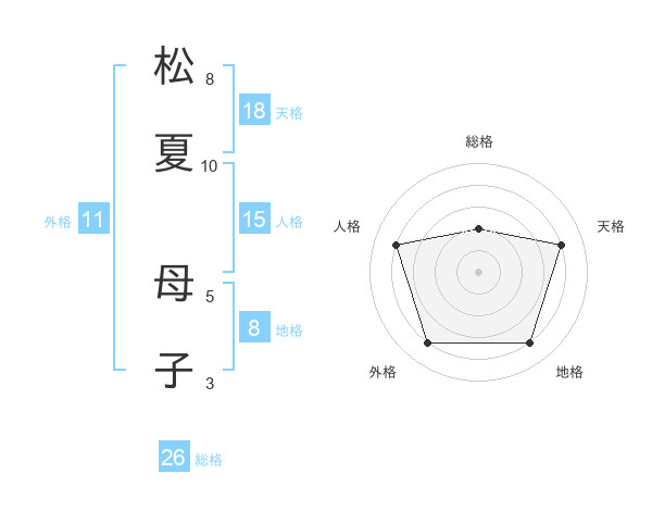 松夏 母子さんの天格は18画の4点!