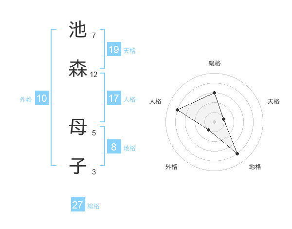 池森 母子さんの総格は27画の3点!