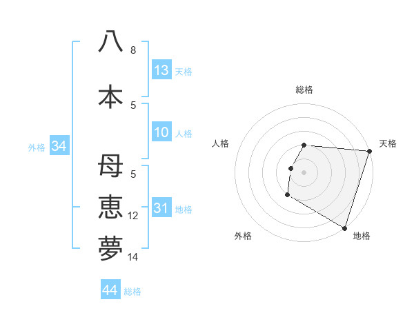 八本 母恵夢さんの総格は44画の2点!