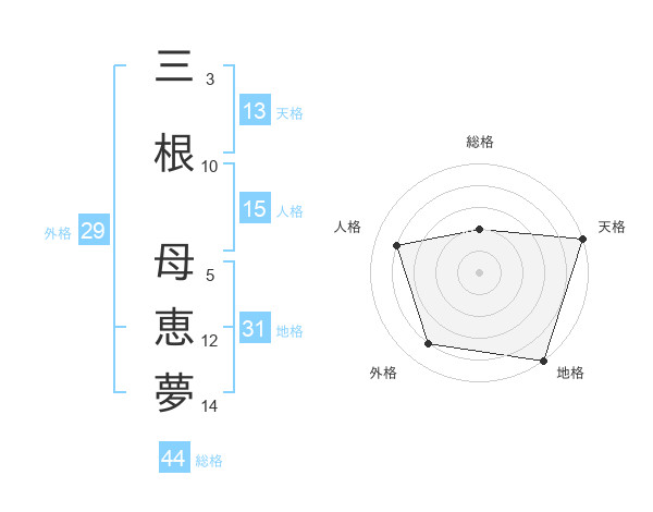 三根 母恵夢さんを姓名の画数から五運を鑑定