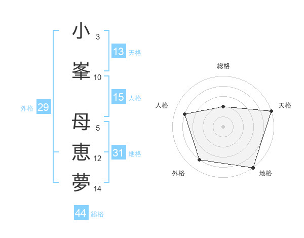 小峯 母恵夢さんを姓名の画数から五運を鑑定