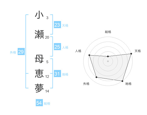 小瀬 母恵夢さんの天格は23画の5点!