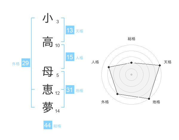小高 母恵夢さんを姓名の画数から五運を鑑定