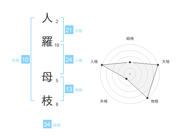 人羅 母枝さんの天格は21画の5点!