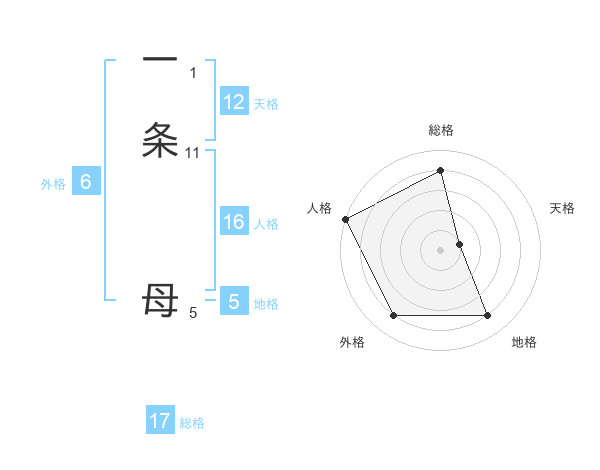 一条 母さんの総格は17画の4点!