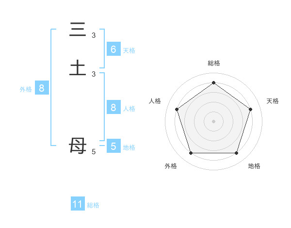 三土 母さんの総格は11画の4点!