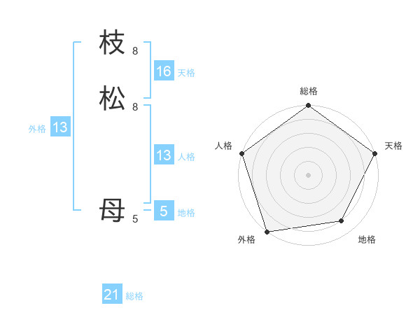 枝松 母さんの総格は21画の5点!