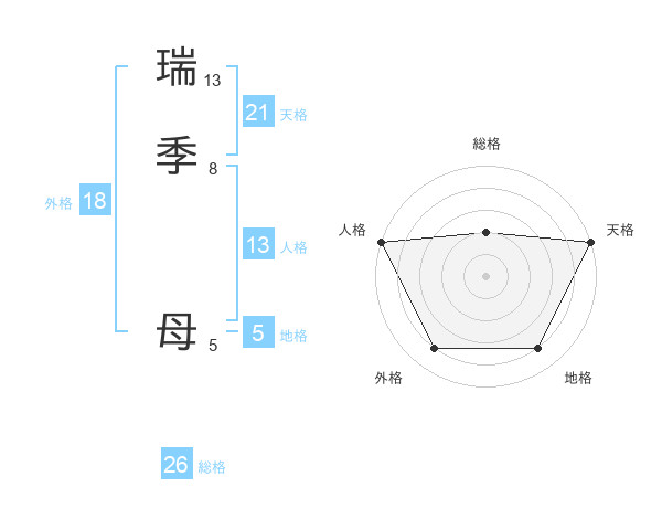 瑞季 母さんの総格は26画の2点!