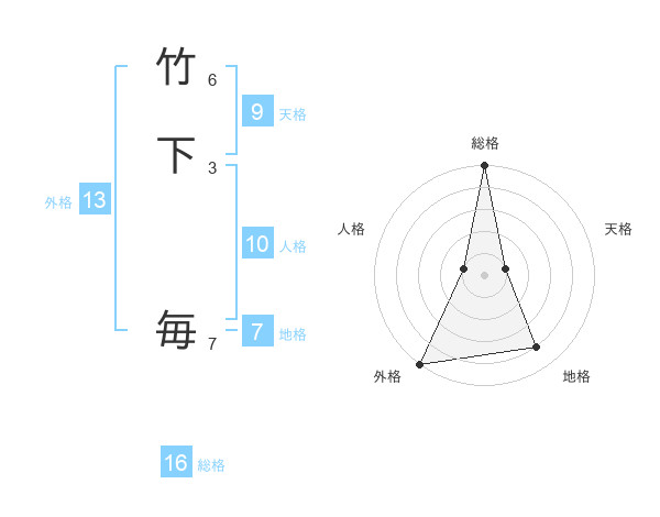竹下 毎さんの総格は16画の5点!