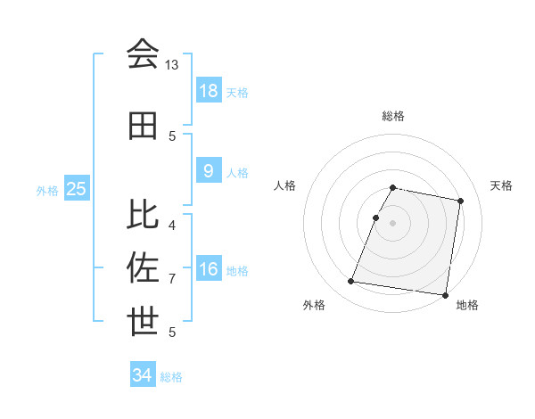 会田 比佐世さんを姓名の画数から五運を鑑定