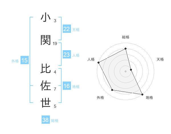 小関 比佐世さんの天格は22画の1点