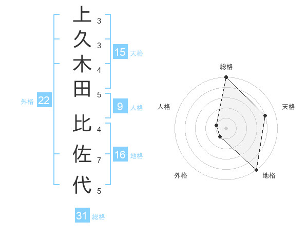上久木田 比佐代さんの総格は31画の5点!