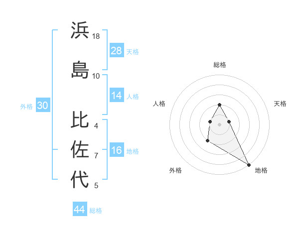 浜島 比佐代さんを姓名の画数から五運を鑑定
